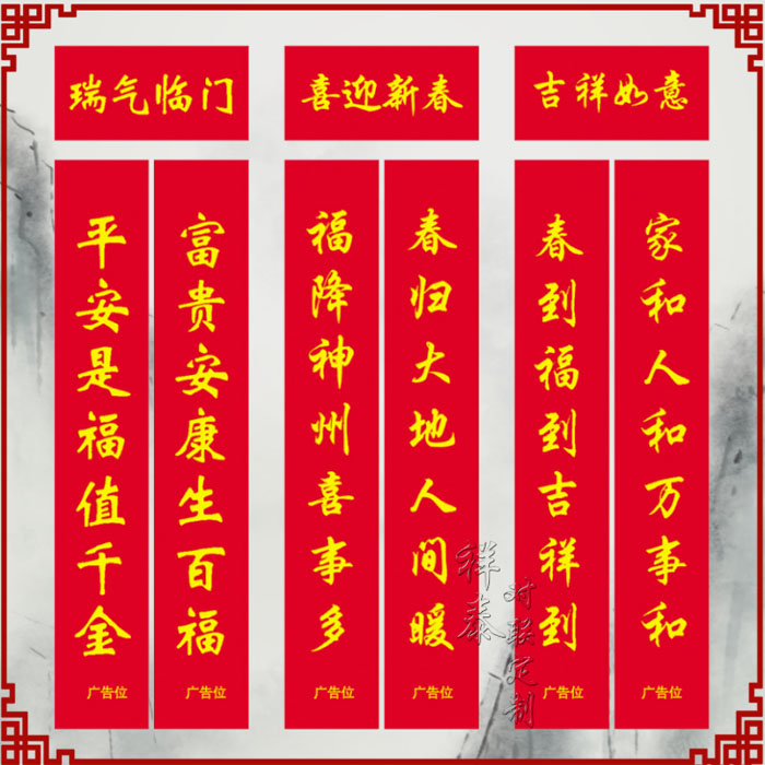 公司主要產(chǎn)品:廣告春聯(lián)、定做春聯(lián)、定制春聯(lián)、禮品春聯(lián)、高檔廣告春聯(lián)制作.促銷廣告春聯(lián)等,我們的服務(wù)宗旨:信譽(yù)比承諾好、質(zhì)量比價(jià)格高。我公司是菏澤專業(yè)的春聯(lián)印刷廠和對(duì)聯(lián)印刷廠。是專業(yè)生產(chǎn)和設(shè)計(jì)對(duì)聯(lián),年畫春聯(lián)印刷廠、春聯(lián)印刷廠、對(duì)聯(lián)印刷廠、春聯(lián)印刷廠、定做春聯(lián)廠家、對(duì)聯(lián)生產(chǎn)廠家、對(duì)聯(lián)廠、春聯(lián)廠。